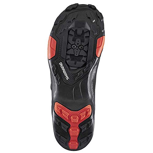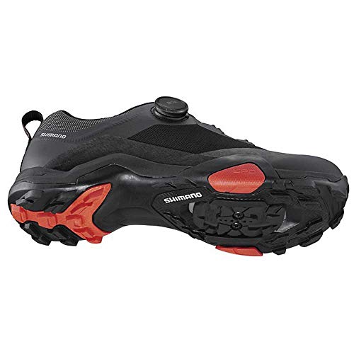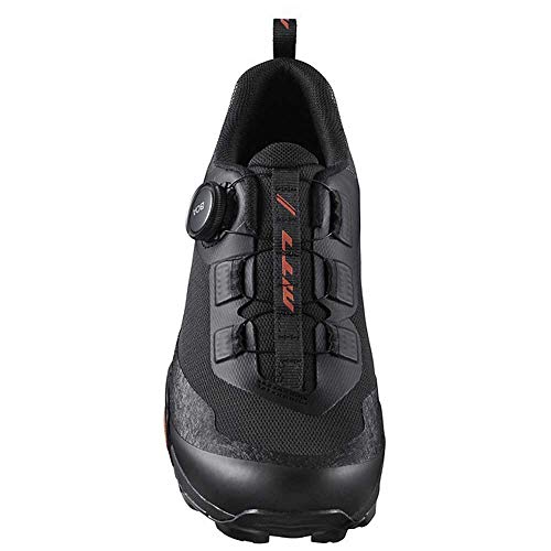 Der Shimano Fahrradschuh SH-MT7L für Damen und Herren ist robuster MTB- und Tourenschuh aus Synthetikleder. Die EVA-Zwischensohle und Gummi-Außensohle erhöht die Pedaliereffizienz und bietet ausgezeichneten Gehkomfort. Die flexible, halblange Versteifungsplatte und stoßdämpfendes EVA bieten auf dem Rad sowie abseits des Bikes beste Leistung. Der Verschluss mit der Boa® L6-Spule lässt sich präzise einstellen für einen guten, festen Sitz. Der MTB-Radschuh SH-MT7L von Shimano wird empfohlen für die Pedale PD-M8120, PD-T8000. Shimano Schuhe fallen klein aus, daher empfehlen wir die Schuhe eine Nummer größer zu bestellen.