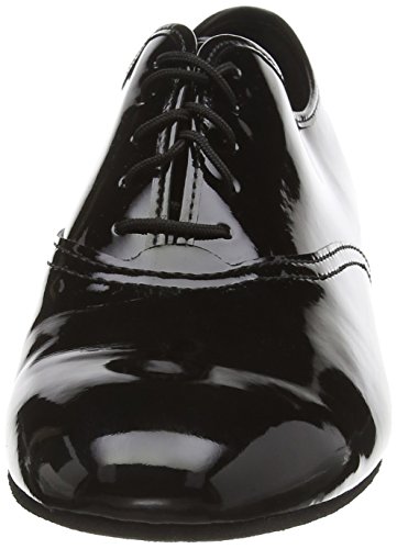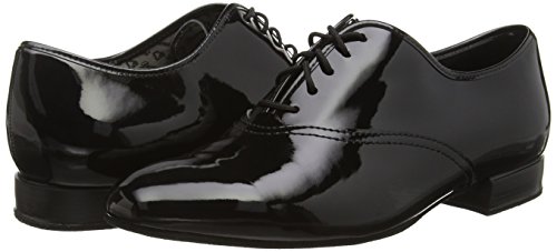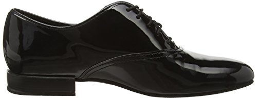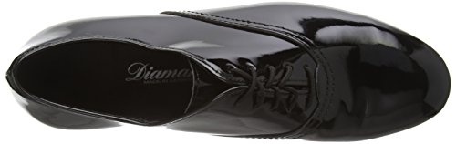 Diamant Herren Tanzschuhe Made in Germany handgefertigt in klassischer Plain Oxford Ausführung mit geschlossener 5-Loch Schnürung. Dieser Tanzschuh wird in der Weite G (Normalweite) mit einem Schock absorbierenden 2 cm Standard Absatz hergestellt. Als Innenauskleidung wird ein atmungsaktives, antibakterielles und Feuchtigkeit absorbierendes Microfaser aus italienischer Premium-Herstellung eingearbeitet. Für das Obermaterial aus schwarzem Lack synthetic wird ein hochwertiges Synthetikmaterial aus Italien verwendet.